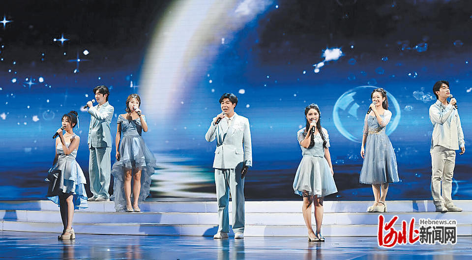 整台晚会围绕“青春律动、蓬勃向上”的基调,呈现了一系列形式多样、内涵丰富的精品节目。河北传媒学院的舞蹈《散乐图》以五代白石彩绘散乐图浮雕为灵感,让千年文物在当代舞台上“活起来”;邢台学院的音诗画表演《烽火中的青春》深情演绎抗大师生在烽火中办学、在战斗中成长的感人故事。此外,河北大学的微型音乐剧《很高兴遇见你》、燕山大学的独唱《如愿》及校园歌曲联唱等节目,以年轻化的艺术表达,展现当代大学生的青春活力与积极向上的精神风貌。